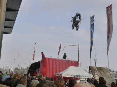 Ein Drittel des Besucherrückgangs von der letztjährigen zur bisher erfolgreichsten SWISS-MOTO im Jahr 2011 konnte in diesem Jahr wettgemacht werden. Mit 66'597 registrierten Besuchern rückt sie auf den 2.Platz in der 10-jährigen Geschichte der SWISS-MOTO. Besonders am frühen Samstagnachmittag stauten sich die Besucher in den Gängen und vor den Kassen bildeten sich riesige Warteschlangen. Das Konzept der Event-Ausstellung, in welcher dem Besucher sehr viel Unterhaltung geboten wird, scheint beim Kunden anzukommen. So wünsche ich dem erfolgreichen Team um den initiativen Leiter Yves Vollenweider viel Erfolg auch im nächsten Jahr, in welchem ich pausieren werde: Sigrid und ich werden im nächsten Winter für 2 Monate in Australien Ferien verbringen und dann reichts weder zeitlich noch finanziell für eine SWISS-MOTO-Teilnahme. Klicke auf untenstehendes Bild und Du kannst Dich durch den Schlussbericht [95 KB]