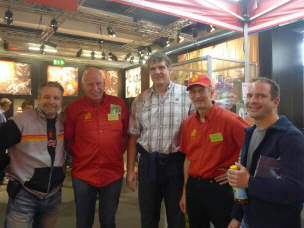 So zeigte sich der Stand für die Ankömmlinge in Halle 3: Hans Richard hat an unserem Stand Werbung gemacht für seine Reisen, wo auch regelmässig meine Kunden dabei sind. Sigrid's Schwester Beate verstärkte das Verkaufsteam am 1. und 2. Ausstellungstag, bevor sie wegen Krankheit die Flügel streichen mussten. Auch Sigrid war anwesend, wer mit ihr kommunizieren wollte, konnte dies dank ihres iPhone 6 tun. Die Truppe, die am Sonntagabend mithalf, abzuräumen: Frank und Karin verstärkten das Team am letzten Ausstellungstag.